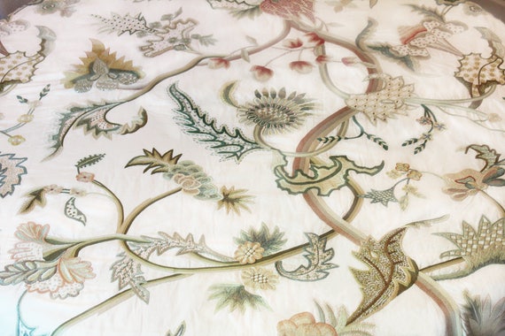 Sale Large Beautiful Hand Embroidered Tree Of Life Design Jacobean Embroidery Recreation Vintage Chelsea Textile King Coverlet